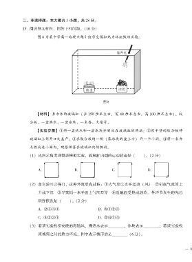(1) 从图示角度观察该模拟实验ꎬ 玻璃缸内烟的运动轨迹是 ( )ꎮ (2 分)