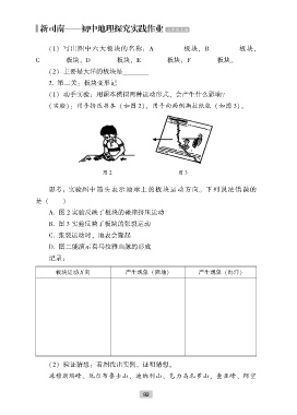 思考: 实验图中箭头表示地球上的板块运动方向ꎮ 下列说法错误的