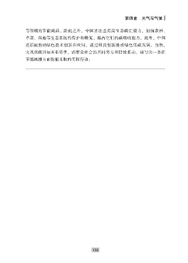 第四章 天气与气候 等领域的节能减排ꎮ 除此之外ꎬ 中国还注重提高生态碳汇能力ꎬ 加强森林、 草原、 湿地等生态系统的保护和修复ꎬ 提高它们的碳吸收能力ꎮ 此外ꎬ 中国 还积极推动绿色技术创新和应用ꎬ 通过科技创新推动绿色低碳发展ꎮ 当然ꎬ 实现双碳目标并非易事ꎬ 需要全社会的共同努力和持续推动ꎮ 请写出一条在 节能减排方面你能采取的实际行动: 1 3 3