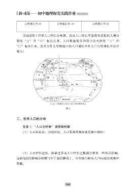 ③阅读图 3 世界人口增长分布图ꎬ 找出人口增长率最高和最低的大洲分