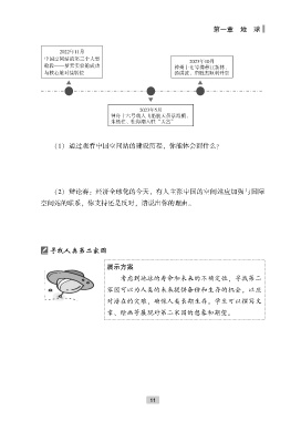 第一章 地 球 (1) 通过观看中国空间站的建设历程ꎬ 你能体会到什么? (2) 辩论赛: 经济全球化的今天ꎬ 有人主张中国的空间站应加强与国际 空间站的联系ꎬ 你支持还是反对ꎬ 请说出你的理由ꎮ 寻找人类第二家园 展示方案 考虑到地球的寿命和未来的不确定性ꎬ 寻找第二 家园可以为人类的未来提供备份和生存的机会ꎬ 以应 对潜在的灾难ꎬ 确保人类长期生存ꎮ 学生可以撰写文 章、 绘画等展现对第二家园的想象和期望ꎮ 1 1
