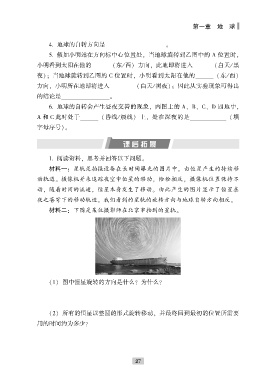 5. 假如小明站在方向标中心位置处ꎬ 当地球旋转到乙图中的 A 位置时ꎬ
