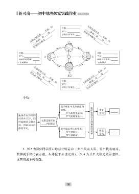 小结: 3. 图 3 为两位同学演示地球公转运动 (女生代表太阳ꎬ 男生代表地球ꎬ 其伸展手臂代表赤道ꎬ 头部位于赤道北部)ꎬ 图 4 为某日太阳光照示意图ꎮ 读图完成下列各题ꎮ 3 0